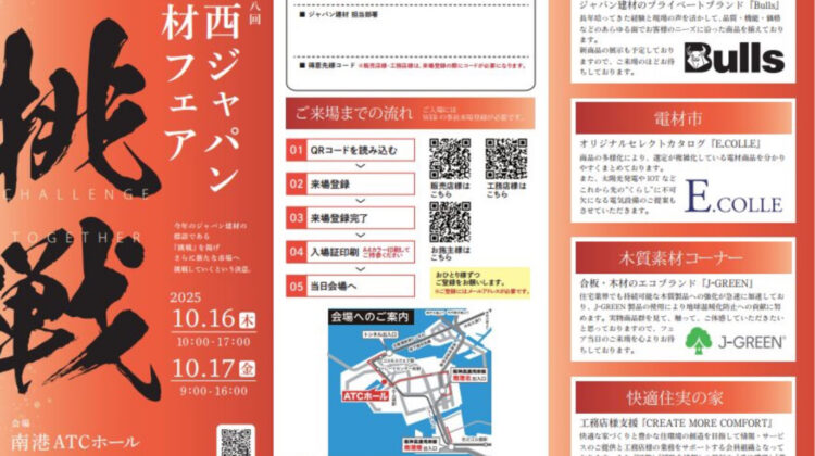 10月16日(木)~17日(金)「第38回関西ジャパン建材フェア@大阪南港ATCホール」に出展いたします。